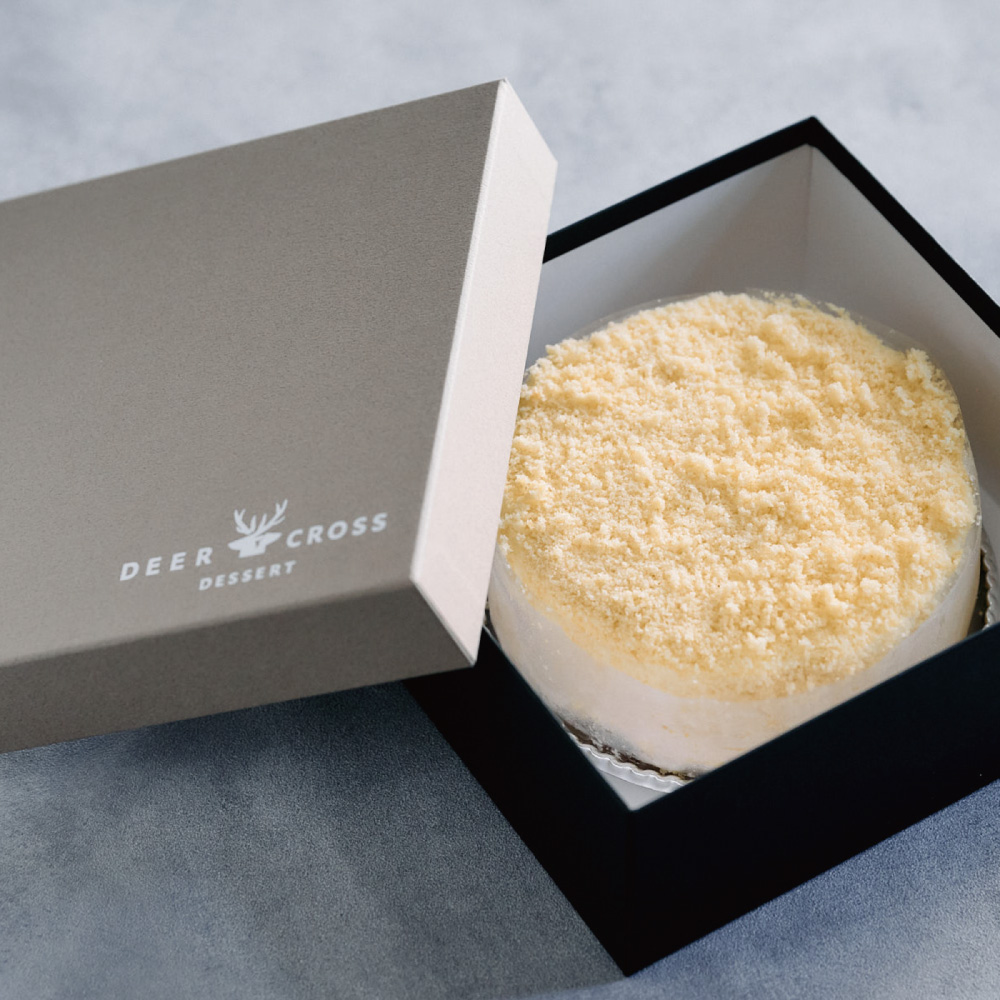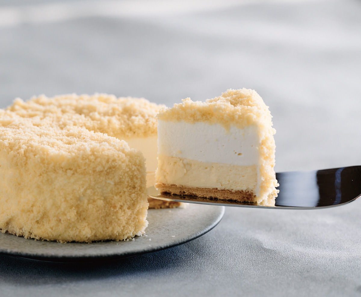 レモン風味のさっぱりとしたレアチーズムース生地とクリームチーズをたっぷり使ったずっしりとしたバスクチーズ生地の2層が口の中で混ざり合うことで、濃厚ながらも軽い口当たりを実現させました。